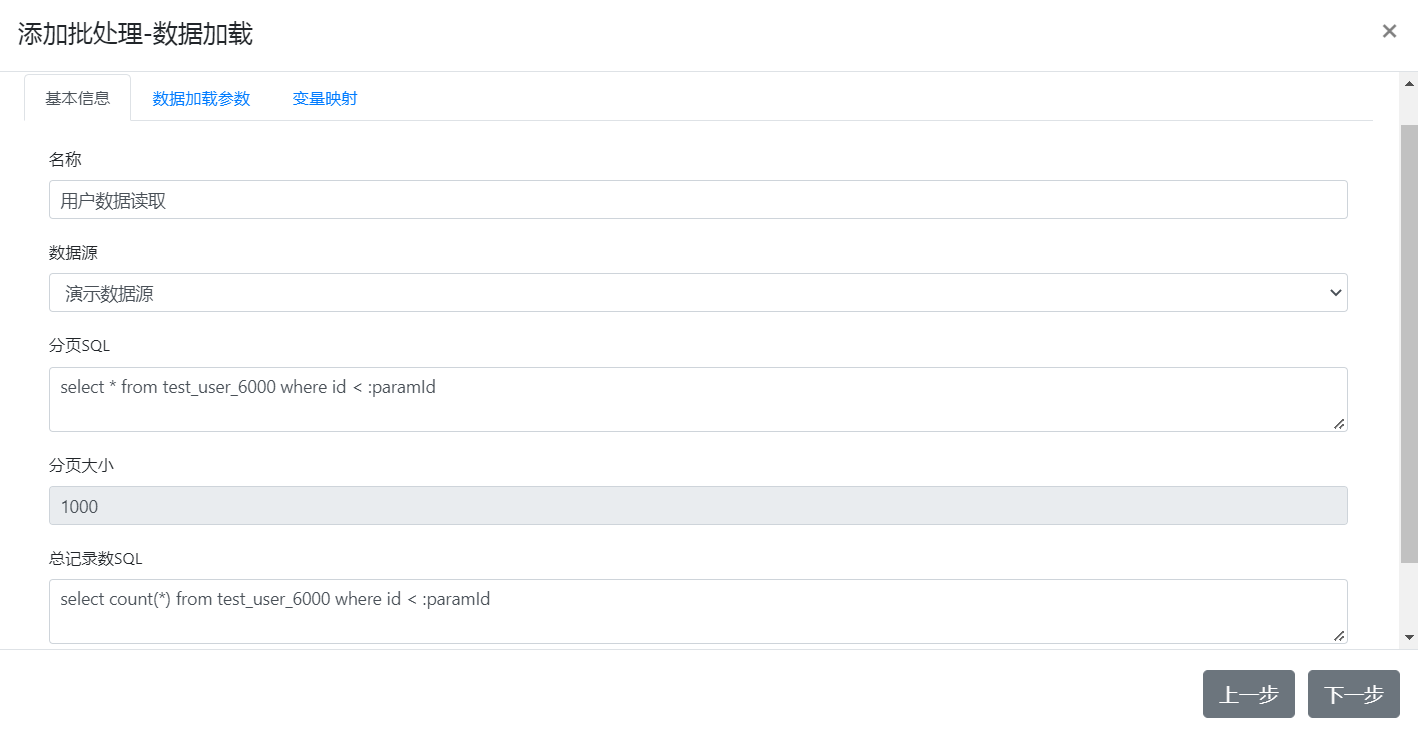 - 数据源: 选取数据源管理中配置的数据源,作为加载数据的数据库