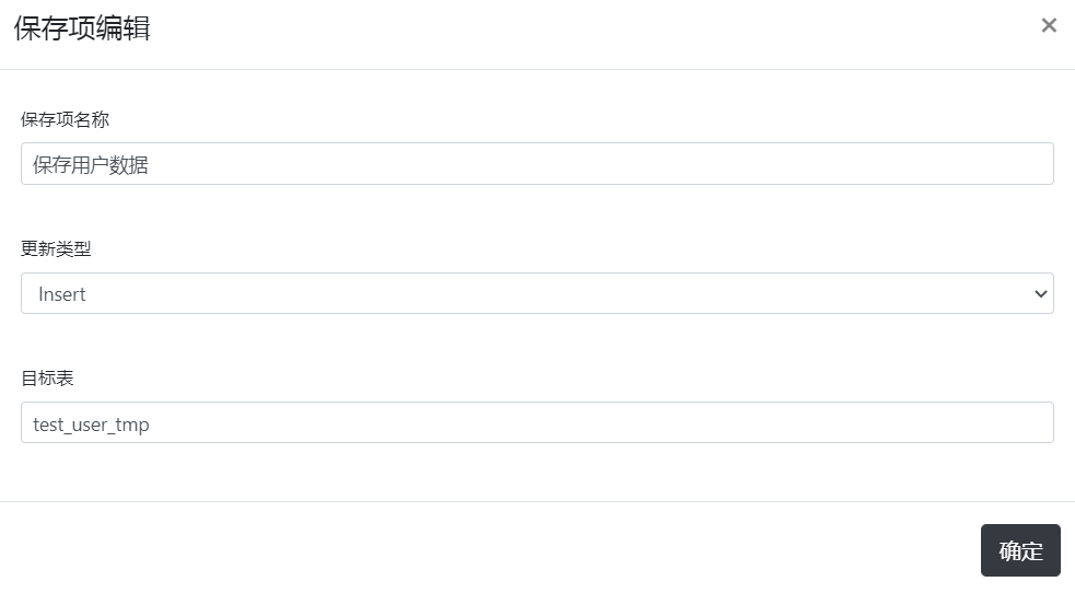 点击【添加保存项】按钮,新增保存项的目标表与保存类型信息。