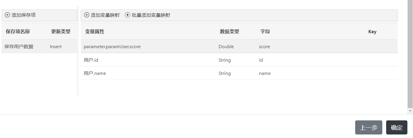 如果保存项的更新类型是update、delete,变量映射的属性中需要设置主键key。