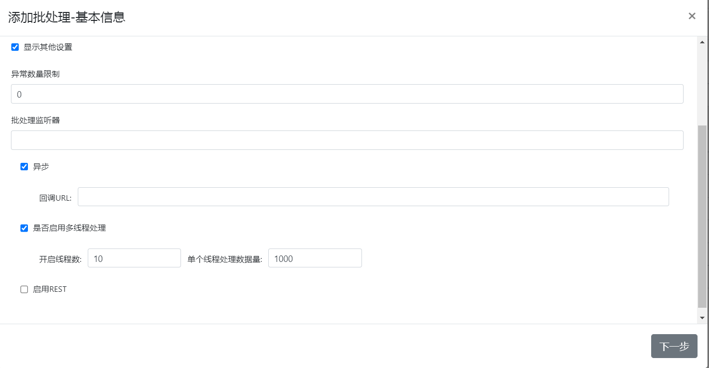 - 是否启用多线程处理: 默认启用,默认开启10线程,单个线程每次获取数据1000条。不启用将以单线程执行任务。