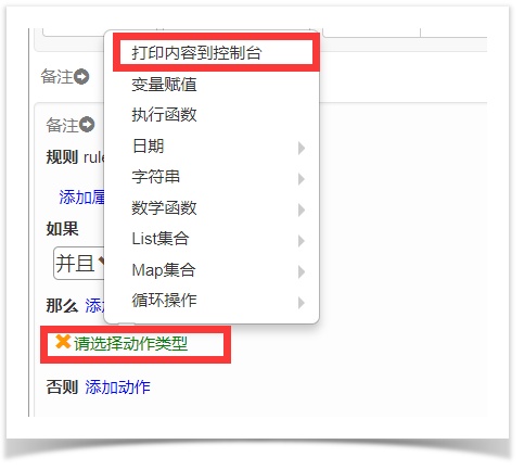 在URule Pro中还提供了一个名为urule.debug的系统属性,该属性值默认为true,这时所有调试信息默认都会直接在日志中打印,当将产品部署到生产环境中时,我们需要将urule.debug属性设置为false,这样所有调试信息都不会再输出,这其中也包括URule规则集里提供的名为“打印内容到控制台”的动作,这样就可以快速完成项目上线,而不用担心项目中因有大量调试信息输出而需要重新修改规则属性的问题。如下图所示: