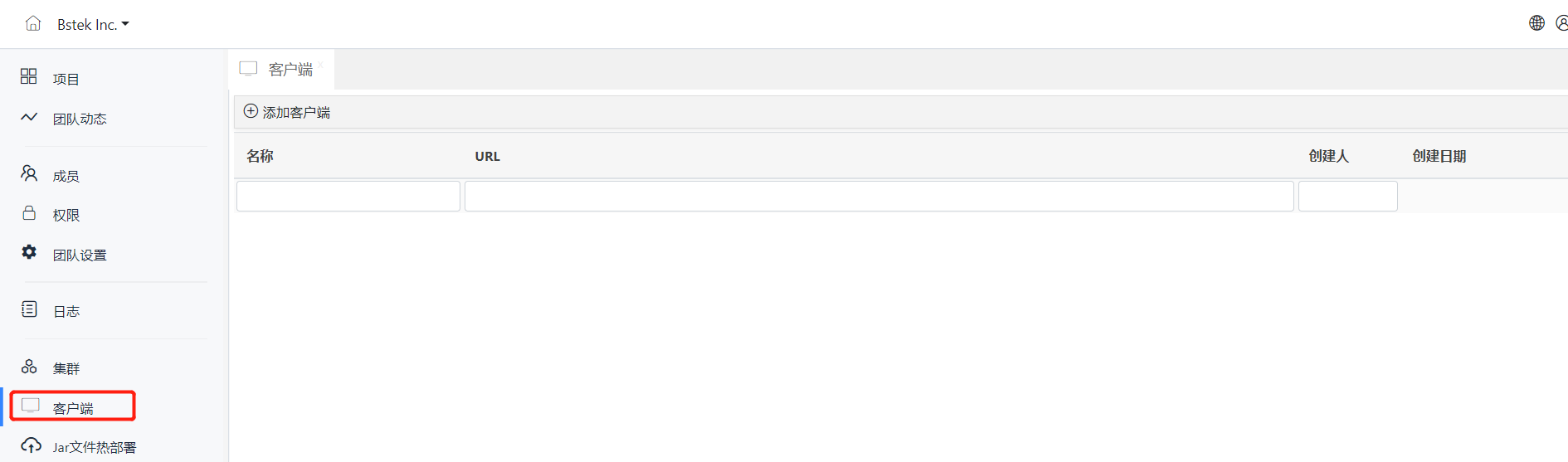 如果当前登录用户为团队创建人员,那么在登录系统后,可以看到客户端配置入口,如下图: