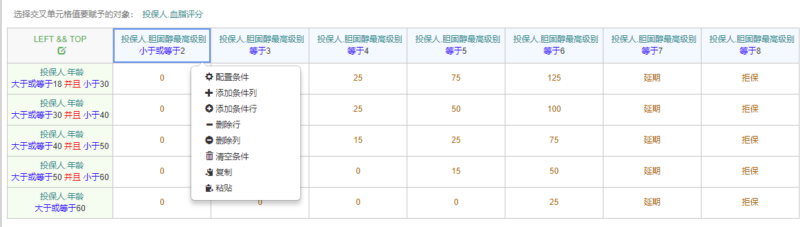 在URule Pro提供的普通评分卡当中,只能针对某一个对象的一些属性进行评分,这种评分方式可以满足大部分评分系统的需求,但在某些复杂的评分需求中,需要对多个对象的不同属性进行叠加组合评分,针对此类需求,URule Pro提供了复杂评分卡功能。复杂评分卡的配置方式与决策表有些类似,只是对于条件列头只能选择具体的对象,而每个条件单元格在配置条件时都需要选择与当前列头选择的对象对应的具体属性,这样就可以满足任意复杂的评分需求。