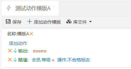 打开一个项目,在动作模版分类下可以创建动作模版文件,在动作模版文件中,可以把一些通过的动作定义出来,并赋予有意义的名称,这样在向导式规则集文件中就可以引用动作模版文件并在规则的动作部分使用它, 动作模版文件如下图所示: